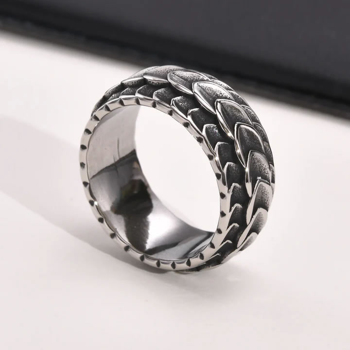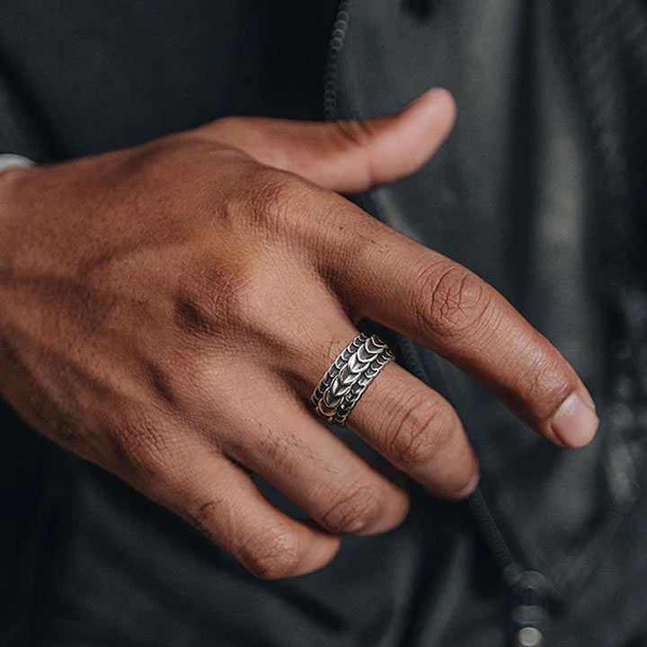 Awaken the serpent within. The Jormungandr Dragon Scale Ring is inspired by the World Serpent of Norse mythology—Jormungandr, the colossal sea serpent destined to bring about Ragnarök. Wrapped in the legend of power, protection, and the eternal cycle, this ring evokes the fearsome beauty of ancient beasts and cosmic strength.