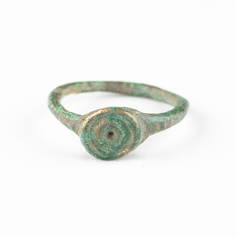 • This ring showcases the Concentric Circle or “Target” motif, a design deeply rooted in the solar symbolism of Northern Britain. While the Roman occupation brought classical styles, local artisans in areas like Cumbria often retained indigenous geometric patterns.