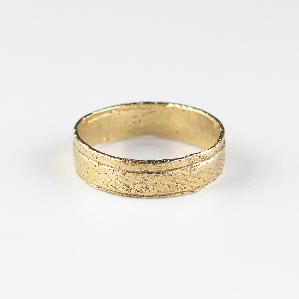 Discovered by a metal detectorist in Northumberland, the original artifact is a remarkably well-preserved “D-section” band. The interior of the ring is smooth from years of constant contact with the skin, while the exterior has developed a deep, dark patina that highlights the ancient “cross-hatched” scoring. The precision of the border lines suggests the original was finished with a steady hand using a fine iron graver.