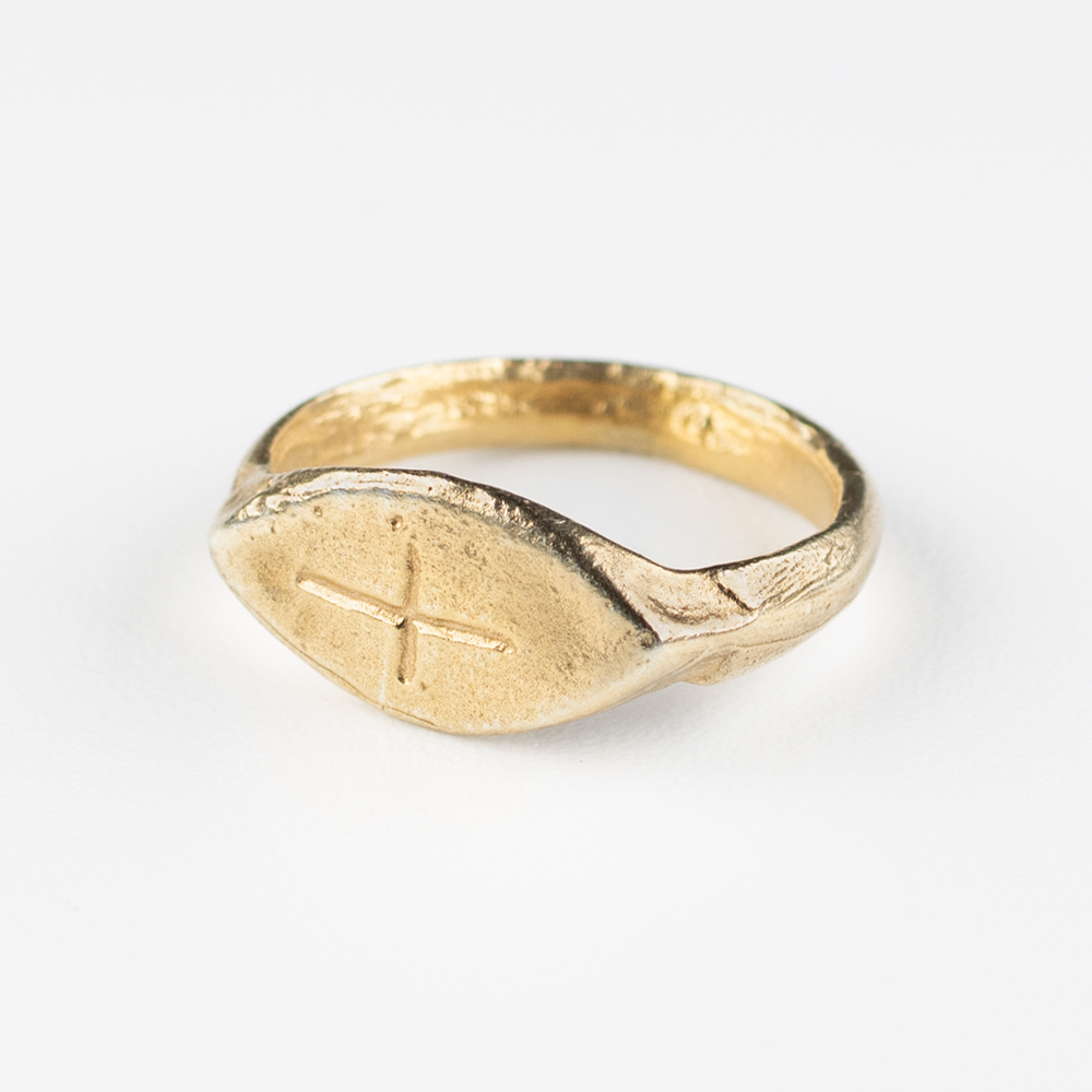 This ring features a simple, incised cruciform motif, marking it as an early piece of Christian-inspired jewellery in Britain. Following the Edict of Milan in 313 AD, Christianity began to spread through the Roman administrative and military classes. Unlike the elaborate Byzantine crosses of later centuries, this Late Roman design is characterized by its understated simplicity, often referred to as a “primary cross.”The design served both as a personal statement of faith and a protective talisman. In the unstable years of the late 4th century, symbols of the new state religion were worn to invoke divine favour and provide comfort during a period of significant social transition. The pointed oval (mandorla-like) bezel is a classic late-Roman form, designed to sit low on the finger, reflecting a shift toward more practical, humble adornment compared to the ostentatious gold rings of the High Empire.