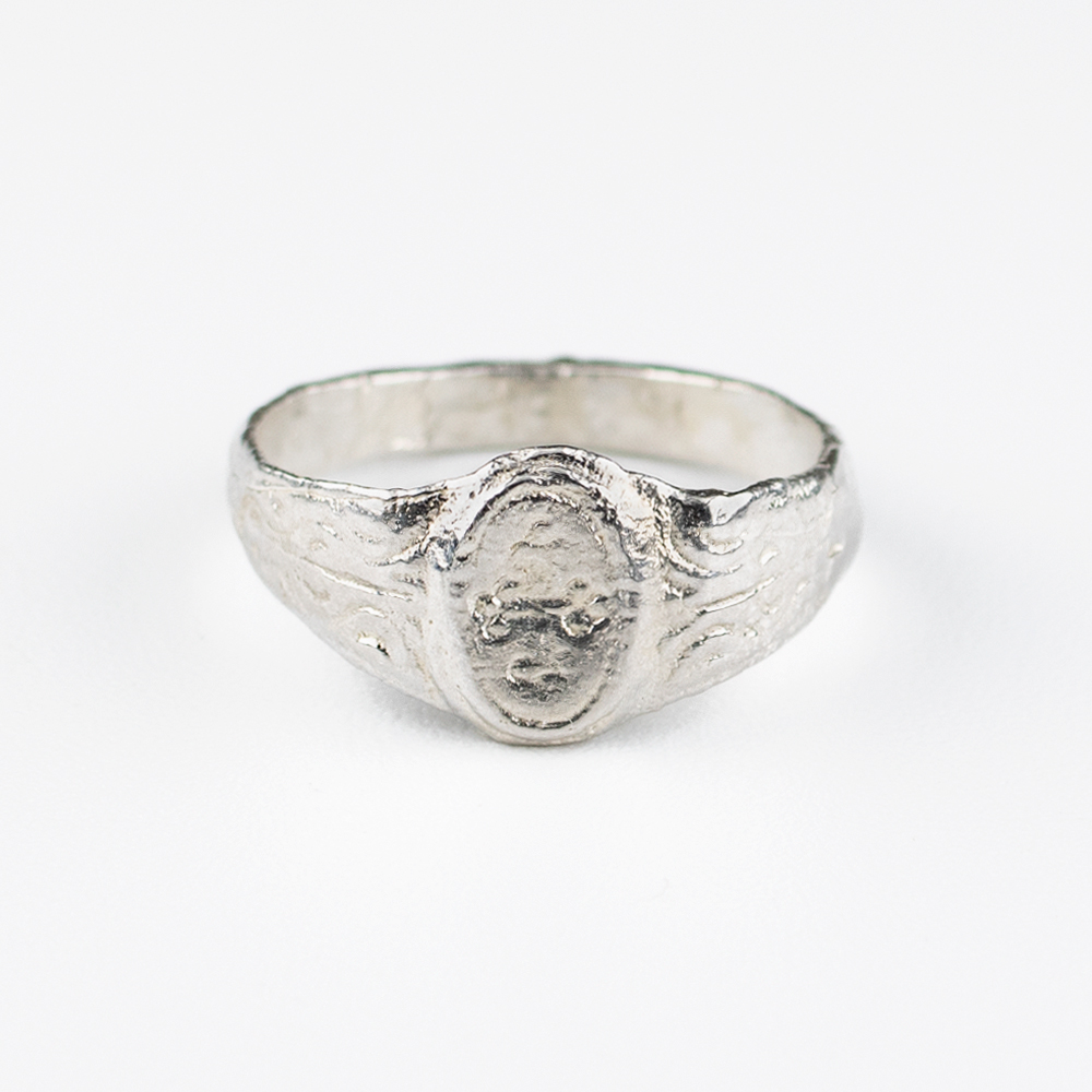 The shoulders of the ring are also heavily decorated with vertical grooves, a technique used to give the bronze a shimmering, multi-faceted appearance that would have mimicked the expensive gold “filigree” work worn by the nobility. In a period where Wiltshire was a hub of pilgrimage and ecclesiastical power, wearing a ring such as this was a bold statement of both social standing and Christian piety.
